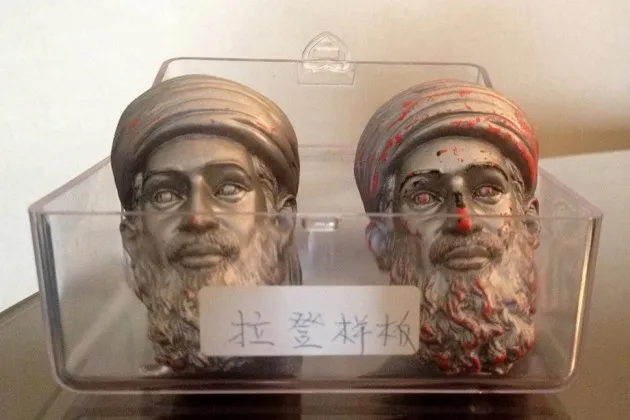在2006年,中央情报局在中国一位玩具制造商的帮助下,开发了三款本·拉登动作玩偶的原型。这里展示的是两个样本头部照片由亚当·戈德曼/《华盛顿邮报》通过盖蒂图片社提供为了帮助消除基地组织在巴基斯坦的影响,中央情报局在2005年委托制作了一款本·拉登的动作玩偶,其熟悉的面孔会融化,露出一个恶魔的面孔。目的是为了吓跑孩子和他们的父母,远离真正的恐怖分子。