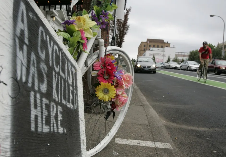 一辆“鬼魂自行车”纪念碑标记了2007年在俄勒冈州波特兰与卡车发生事故时一名骑自行车者被杀的地点。路透社/理查德·克莱门特用#CityReads给我们发推你的最爱。