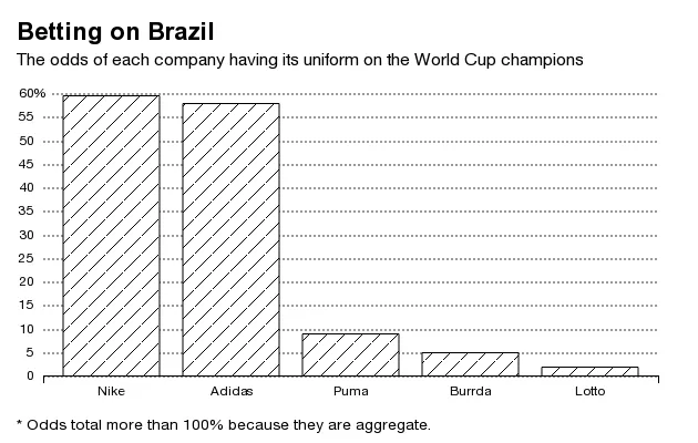 根据拉斯维加斯的赔率,耐克的服装有稍微更好的机会出现在最终冠军身上,几乎完全是因为它购买了jogo bonito的东道主。