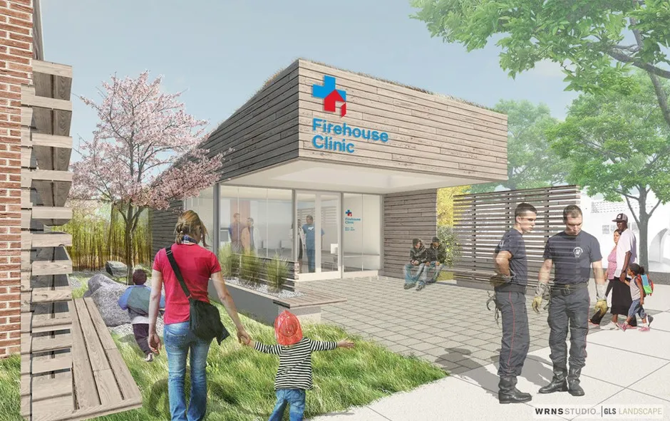 WRNS 设计指南——这是公共建筑在一个新网站上发布的,firehouseclinic.net,并得到了六个不同的加州医疗和应急组织的意见——建议通过景观设计、自然光,甚至建筑的形式来增强那些无法可靠获得医疗服务的社区的信任感。
