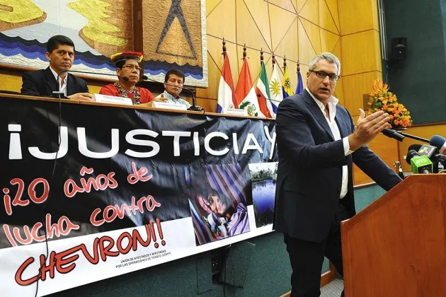 在厄瓜多尔案件中,雪佛龙对主要的美国原告律师史蒂文·唐齐格反击。在三月,它 说服 了一位纽约的美国联邦法官,认为这场长期的污染诉讼演变成了一场涉及强迫、贿赂和腐败厄瓜多尔法官的大规模敲诈计划。唐齐格正在对该裁决提出上诉,这可能使他很难收回他代表成千上万贫困厄瓜多尔雨林居民赢得的95亿美元判决。