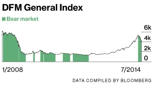 尽管美国股市在异常缺乏波动的情况下稳步上涨,但迪拜在过去六年中经历了八次熊市——下跌20%或更多。最近的波动尤其戏剧化。从去年6月13日到今年5月5日,基准DFM综合指数上涨了超过一倍,但到6月30日却下跌了26%。7月前两天的13%反弹使得该指数今年上涨了30%。