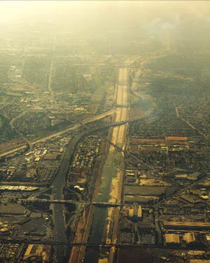 目前,河流大部分是一个混凝土洪水渠道。美国陆军工程兵团在1930年代和1940年代将51英里河流中的约43英里用混凝土包裹,以应对几次致命的洪水。好莱坞此后将这一混凝土景观作为电影的背景,包括原版 《怪胎星期五》、《油脂》、《唐人街》 和 《终结者2:审判日》。即使在城市潮湿的冬季,河流也不会汹涌而出。它主要储存来自附近污水处理厂的径流。