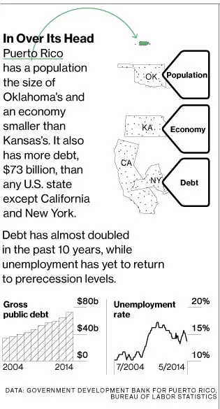 波多黎各及其机构多年来一直依靠借款运营——累计债务达到730亿美元,并且自2000年以来,向华尔街支付了9.1亿美元的费用以安排其债券销售,彭博社数据显示。根据其规划委员会的数据,自2006年以来,其经济收缩了约11%。13.8%的失业率是美国失业率的两倍多。