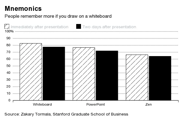 即使你在小学时美术课不及格,那些手绘的图形也更令人难忘。平均而言,白板信息的影响力比其他方法高出8%——通过回忆、演示质量、可信度和参与度来衡量。