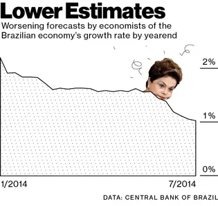 罗塞夫面临的重大挑战将是修复世界第七大经济体,该经济体在过去二十多年中以最低的速度增长。这在一定程度上是由于投资者对她政府政策的不满。商业信心降至十多年来的最低水平。在七大拉美经济体中,巴西在固定投资方面排名最后,约占国内生产总值的18%。2014年的增长预测已从年初的水平减半,仅略超过1%。伦敦投资咨询公司Spiro Sovereign Strategy的董事总经理尼古拉斯·斯皮罗表示:“巴西正在与衰退调情,”而且在政策上没有政治共识,它“将会在底部徘徊很长时间。”