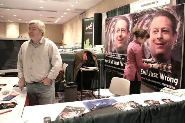 2009年国际气候变化会议上的Greener Horizon展位照片由切斯特·希金斯(Chester Higgins Jr.)/《纽约时报》通过Redux提供本周早些时候,哈特兰研究所(Heartland Institute)在拉斯维加斯召开了第九届国际气候变化会议。哈特兰是一个位于芝加哥的非营利自由市场智库,年预算为600万美元,自2008年以来一直为那些对确认人类引起的气候变化的科学持怀疑态度的人举办会议。该会议简称为ICCC,这个缩写故意与国际气候变化政府间专门委员会(IPCC)相呼应,后者是一个发布全球变暖最全面研究的国际机构。ICCC会议,而非IPCC会议,曾在纽约、慕尼黑和芝加哥举行。今年的会议在曼德勒湾度假村和赌场(Mandalay Bay Resort & Casino)以约600人的晚宴拉开帷幕,顶层装饰着一则闪闪发光的迈克尔·杰克逊重演秀的广告。