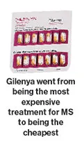 立普妥照片由保罗·J·理查兹/法新社通过Getty Images提供在2010年,首个用于治疗多发性硬化症的口服药物上市,这是一种来自诺华的药丸,名为吉利雅。每月约4000美元,它曾是治疗多发性硬化症最昂贵的药物。现在它是最便宜的。“当它上市时,所有旧药的价格都上涨了,”国家多发性硬化症协会的联邦政府关系副总裁泰德·汤普森说。