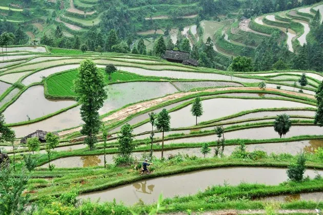 2013年6月4日,在中国贵州省锦屏县,稻田的梯田正在耕作摄影:ChinaFotoPress通过Getty Images贵州可能是中国最贫穷和最不发达的省份之一。但另一方面,这里环境如此原始,以至于习近平主席最近开玩笑说这里的空气应该装瓶。