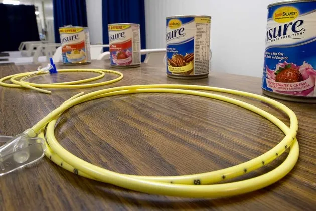 在古巴关塔那摩湾美国拘留中心的德尔塔营拘留医院中,喂养管和确保饮料罐照片由保罗·J·理查兹/法新社通过Getty Images提供海军医疗官员首次拒绝强制喂养在古巴关塔那摩湾绝食的拘留者。