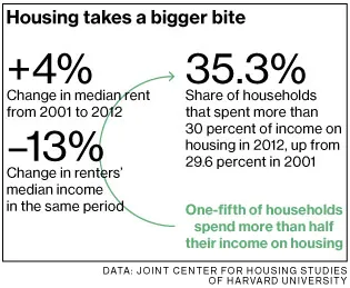 如果30%的规则曾经有意义——经济学家对此提出质疑——那么现在几乎毫无意义,因为几乎4100万美国家庭的支出超过了这个比例。收入增长缓慢,但房价上涨,租金飙升,威胁着使从奥斯丁到纽约的城市对普通收入者变得负担不起。在旧金山,任何可用的合理价格住房很快就会消失。“这不仅仅是科技人员在争抢5000美元的公寓,”加州住房合作伙伴非营利组织的首席执行官马特·施瓦茨说。“底层的竞争非常激烈。”