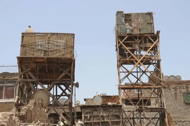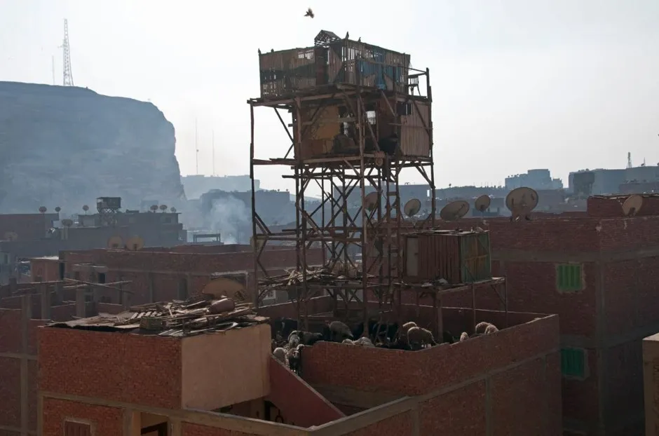 曼努埃尔·阿尔瓦雷斯·迪埃斯特罗俯瞰开罗天际线,你的目光可能会落在那些摇摇欲坠、岌岌可危的结构上,这些结构 precariously perched on rooftops。看起来像可怕的战俘笼,这实际上是为训练飞翔于城市的鸽子而设的巢箱,成群结队地遮蔽天空。