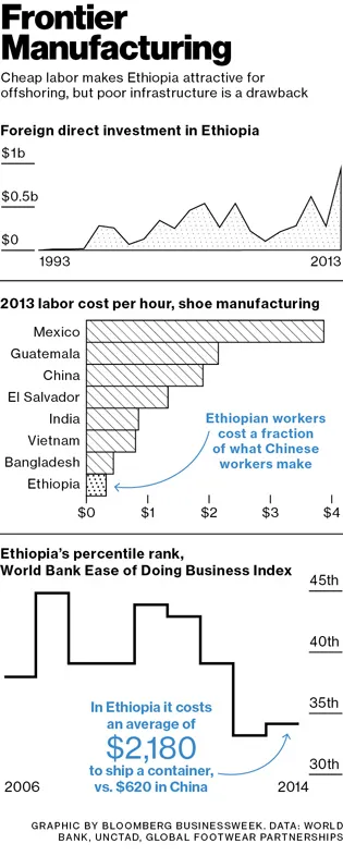 在一个80%的劳动力从事农业的国家,制造商不必担心寻找新工人。大约9600万的人口是非洲仅次于尼日利亚的第二大人口。廉价的劳动力和电力,以及一个努力吸引外国投资的政府,使埃塞俄比亚比许多其他非洲国家更具吸引力,约翰霍普金斯大学国际发展与比较政治学教授德博拉·布劳提甘表示。“他们正在努力建立转型的条件,”布劳提甘说。“它可能会成为非洲的中国。”根据联合国贸易和发展会议的估计,埃塞俄比亚的外国直接投资在去年同比增长了3.4倍,达到了9.53亿美元。