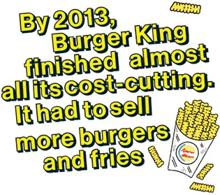 施瓦茨还对管理团队进行了调整,提升了与他年龄相近的人担任高管。因此,汉堡王执行团队的平均年龄从已经年轻的41岁降至39岁。“这是一个充满活力的年轻团队,”董事会成员富兰克林说。“这些人真的很聪明。”在经历了几次令人不堪重负的午餐后,施瓦茨寻求更简单的产品也就不足为奇了。但他需要出于其他原因重新设计菜单。到2013年,汉堡王几乎完成了所有的成本削减。这意味着它必须销售更多的汉堡和薯条,以防止业绩下滑。