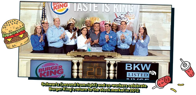 在2010年,施瓦茨策划了3G收购汉堡王,提供了该连锁店股票价格46%的溢价。这引发了一些困惑。汉堡王一直是一团糟,已经持续了几十年。詹姆斯·麦克拉莫尔和大卫·埃德格顿在迈阿密开设了第一家汉堡王。他们艰难度日,直到注意到人们蜂拥到佛罗里达州杰克逊维尔的另一家汉堡店。那家店很脏;男厕的门只挂在一个铰链上。但汉堡很好吃——而且很大。