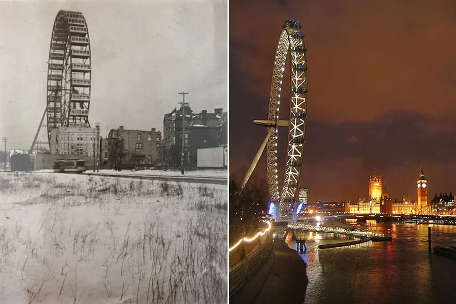 左:1893年在芝加哥建造的原始摩天轮。右:2000年首发的伦敦眼。维基媒体公用摩天轮无疑是怀旧、浪漫和现代社交媒体时代的完美结合。搜索标签 #londoneye 在 Instagram 上产生了超过 595,000 次的点击,大多数照片展示了朋友和家人在英国首都的观景轮上与壮丽景色的合影,该观景轮于 2000 年开放,是该国最受欢迎的收费旅游景点。几座摩天轮还提供包括香槟和巧克力的浪漫套餐,并且是求婚的热门场所。