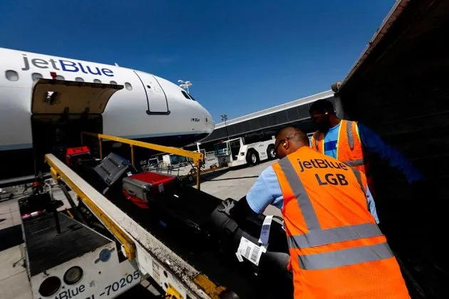 一名机组人员在加利福尼亚州的长滩机场将行李装载到捷蓝航空的飞机上摄影:帕特里克·T·法伦/彭博社托运行李费用的不可抗拒的吸引力可能终于正在围绕 捷蓝航空。这家以蓝色薯片和相对宽敞的腿部空间而闻名的航空公司正在探索其所称的新票价“桶”和“家庭”的收入潜力,以捆绑服务——包括行李——并提高盈利能力。