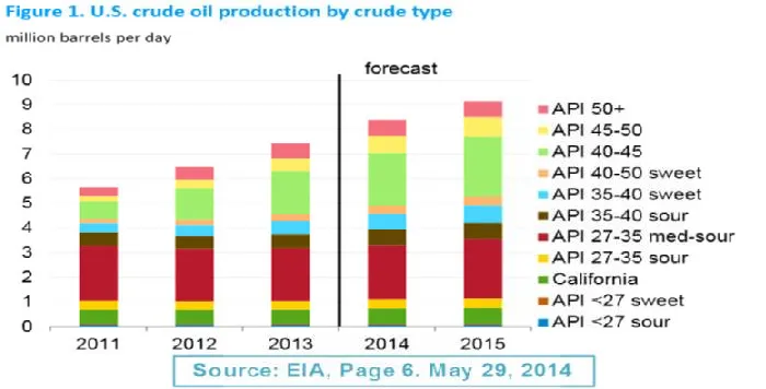 随着美国继续以创纪录的速度增加石油生产,问题将变得更加严重。能源信息署预计,到2015年,美国的石油生产将达到930万桶每天。这部分新石油大多数将是轻质和甜油;其中很多将是冷凝油,通常被认为是API(美国石油协会)重力值超过45或50的任何东西。