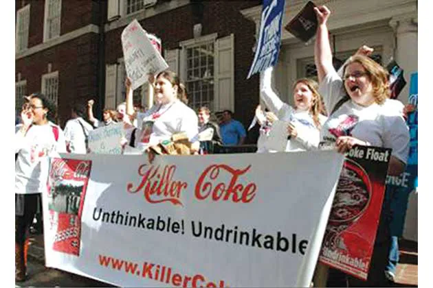 2006 劳工活动家雷·罗杰斯抗议在哥伦比亚可口可乐瓶装厂的八名员工死亡。