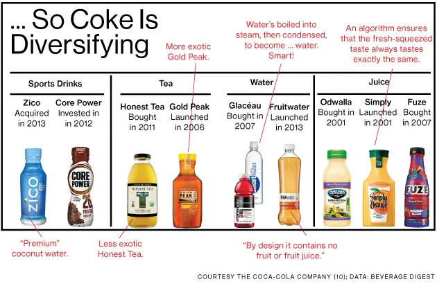 一段时间以来,可口可乐试图通过将其努力集中在印度和非洲等国际市场来实现增长,这些地方的汽水消费仍远低于美国。目前为止,这种策略有效——可口可乐所有主要汽水品牌(除了健怡可乐)的全球收入去年有所上升。在北美,可口可乐开始将自己定位为不仅仅是一家汽水公司,而是更大更广泛的东西,类似于饮料界的宝洁。