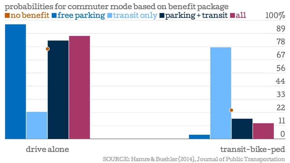 彭博社城市实验室官员称休斯顿地区火灾是由SUV事故引起的加利福尼亚州的反超速法案可能成为交通安全的突破休斯顿附近的管道火灾迫使居民撤离伦敦市长计划将繁忙的牛津街步行化为了说明这个问题,让我们考虑一下弗吉尼亚理工大学交通学者安德里亚·哈姆雷和拉尔夫·比勒的新分析。哈姆雷和比勒分析了华盛顿特区大都市地区4,630名全职工作者的家庭出行调查(包括市中心和内城区)。调查记录了每个人的通勤方式以及在工作中获得的任何通勤福利。