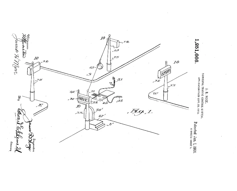 “我发明的系统安装的街道交叉口的透视图。”美国专利商标局