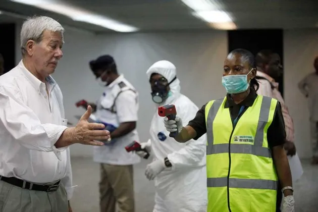 尼日利亚拉各斯的穆尔塔拉·穆罕默德国际机场到达大厅,卫生官员在8月6日对一名工作人员使用温度计摄影:Sunday Alamba/AP Photo在八月这个新闻周期缓慢的时期,你的电视可能正在循环播放鲨鱼袭击的画面或埃博拉的恐慌。但请放心,玩得开心:电视上所称的危险极不可能真的伤害到你。在这里,我们揭穿了夏末恐惧宣传的三个最大谣言。