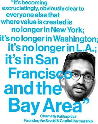这从一开始就是硅谷的DNA。在1999年CNN的一部特别节目中,探讨了互联网泡沫的兴奋与奢华,风险投资家史蒂夫·朱尔维森挑战了该节目的假设,即硅谷是西海岸的华尔街。“认为有人会说‘我只是为了钱’几乎是犯罪的。你之所以这样做是因为你想改变世界,”他说。7月通过电话联系时,朱尔维森认为硅谷的目标没有改变;如果有的话,变得更加宏伟。“越来越多的企业家开始全球思考,关注贫富差距或医疗保健,”他说。“他们不考虑奥巴马医保,因为那太小了。他们忽视现有的教育基础设施,创造这个新的MOOCs(大规模开放在线课程)平台。你只需忽视一切陷入政府泥潭的东西,创造一个新系统。”