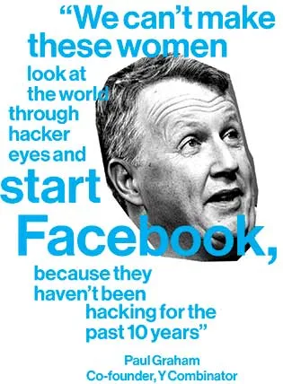 是的,科技企业家绝大多数是男性,进入这一领域的女性越来越少。2012年,计算机科学专业的女性占18%;而在1985年,这一比例为37%。但她们并不全是白人;硅谷的初创公司中充满了印度人、中国人、韩国人、巴基斯坦人——还有一些WASP。