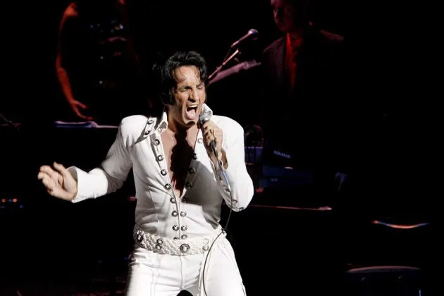 来自安大略省科林伍德的杰伊·扎尼尔在孟菲斯的终极猫王致敬艺术家比赛中表演摄影:斯坦·本田/法新社通过Getty Images 在第八段中澄清了猫王企业的所有权。