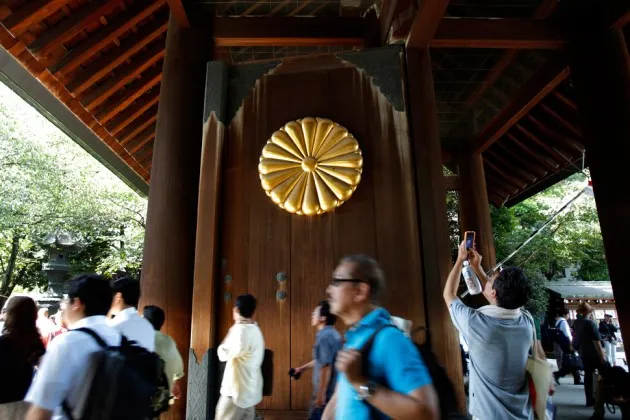 皇室菊花纹章在东京的靖国神社展出摄影:大田清在周五早上,当他的几位内阁成员通过访问东京一个有争议的神社来纪念第二次世界大战结束的周年纪念时,日本首相安倍晋三明智地选择了睡懒觉。他在去年十二月因访问 靖国神社而引发了风波,该神社纪念日本的战争死者。通过跳过靖国,安倍可能提高了与中国国家主席习近平举行峰会的机会,这可能有助于缓解两国之间的紧张关系。