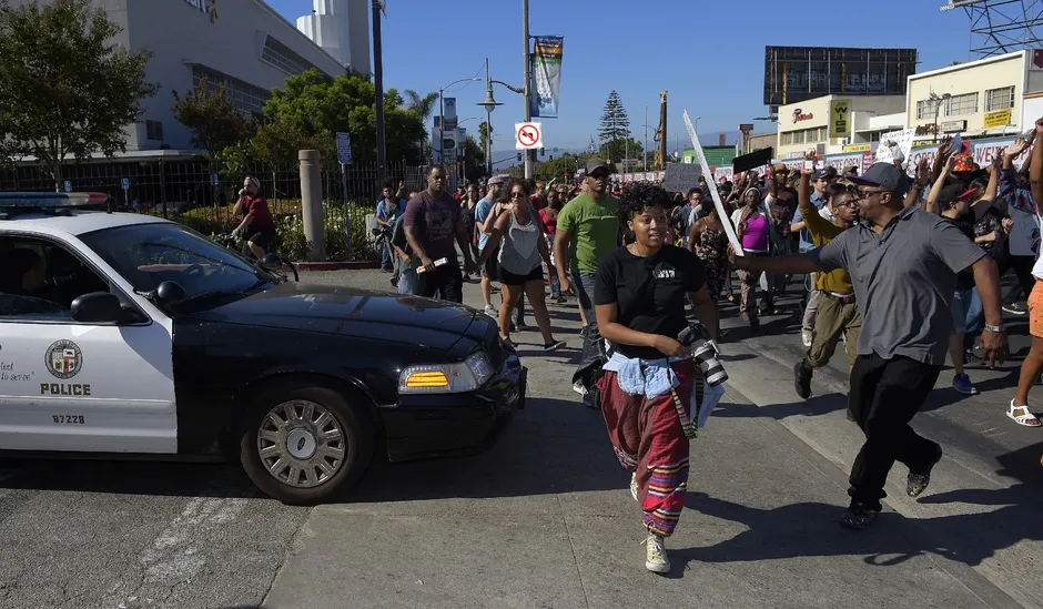 示威者沿Crenshaw大道游行。Mark J. Terrill/AP当然,在弗格森: