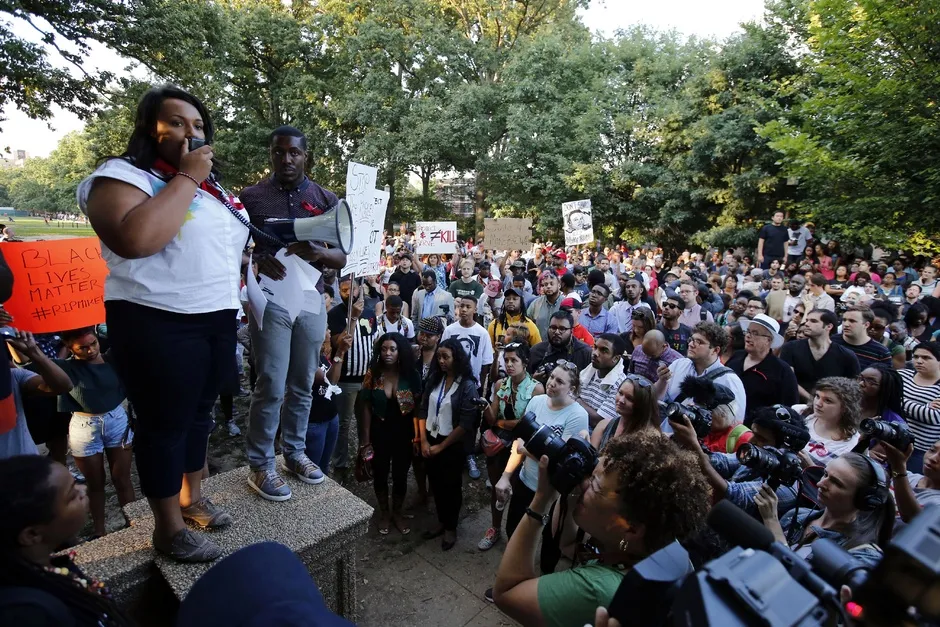 亚历克斯·布兰登/AP在全国各地的城市——从缅因州的波特兰到内华达州的卡森城——社区组织者们在周四晚上举行了全国默哀时刻(#NMOS)的示威活动。由 《黑人杂志》 发布的一个不完整名单列出了近90个参与城市。一些活动吸引了数百人,他们聚集在一起高呼、唱歌、祈祷、游行,并且毫无疑问地在Instagram上表达对迈克尔·布朗和其他歧视与不公正受害者的支持。