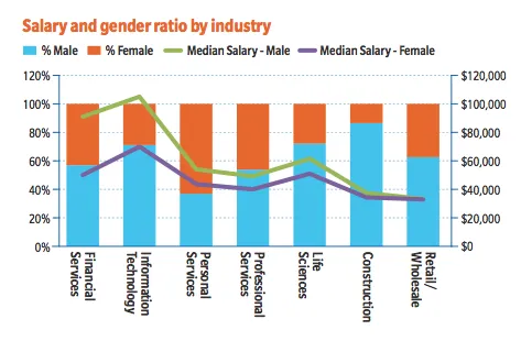 另一个令人沮丧的发现是:女性的薪资在支付最低的行业中与男性的薪资最为接近。