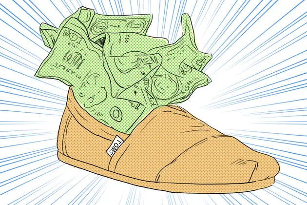插图:Steph DavidsonToms,一个帆布鞋帝国,已经同意将自己的一半出售给私募股权巨头贝恩资本,这笔交易使这个成立8年的鞋类品牌估值达到6.25亿美元——比Quiksilver稍大,基本与SodaStream相当。