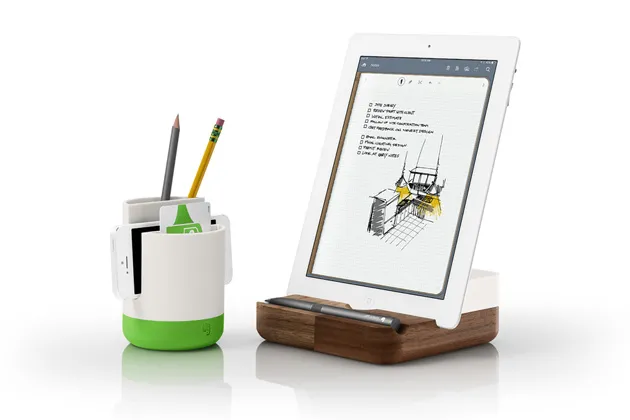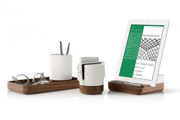 第一波产品包括与 3M 和 Moleskine 等品牌合作开发的一系列杂项。这第二组产品,原本是Evernote的,专注于配件,以整理杂乱的桌面,就像该应用旨在消除数字杂乱一样。铅笔盒、杂物托盘和平板支架——都是由加州设计师 埃里克·佩费弗 设计——将木材的丰富性与塑料的实用性结合在一起。