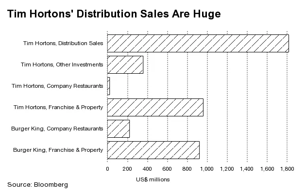 在收入方面,蒂姆·霍顿斯的加拿大业务将贡献大部分。汉堡王的美国和加拿大业务合计仅占合并公司2013年总收入的15%。