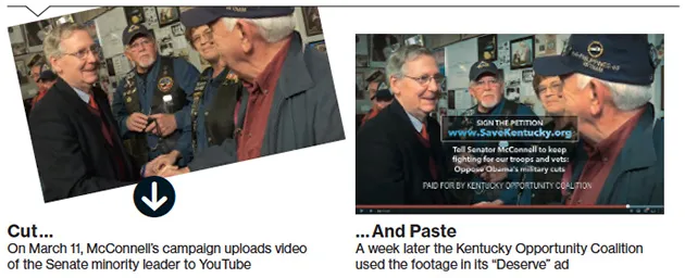 今年早些时候,肯塔基州参议院少数党领袖米奇·麦康奈尔的竞选团队在YouTube上发布了候选人面无表情地微笑着的画面。这看起来像是一次笨拙的病毒式传播尝试——被《每日秀与乔恩·斯图尔特》嘲讽——这是竞选团队向外部团体提供广告素材的合法方式。