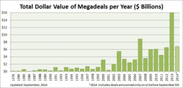Good Jobs First这些交易的价值从1970年代的1亿美元增加到1990年代的每年约10亿美元,到2003年超过50亿美元。2013年,激励金额高达160亿美元,得益于华盛顿州为波音提供的87亿美元的巨额激励计划。根据Good Jobs First的估计,2014年已经过去三分之二,激励金额已超过70亿美元。特斯拉的交易是在俄勒冈州在8月份给予英特尔的20亿美元激励计划之后进行的。根据Good Jobs First的估计,在过去三十多年中,各州已向公司提供了超过700亿美元的激励。
