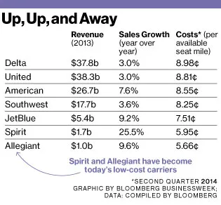 达美航空在第二季度每飞行1英里每个座位的成本为8.98美分,不包括燃料费用。西南航空为8.25美分——低于其他大型航空公司,但比2013年同期上涨了4%。它还因整合和调整AirTran的薪资而经历了更高的成本,AirTran的员工薪资低于西南航空的员工。
