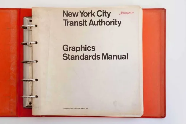 这本稀有的纽约市交通局图形标准手册,2012年在Pentagram Design的地下室发现,仍然保留着其主人的印章感谢标准手册在1960年代,纽约地铁在标识方面一片混乱。车站名称和地铁线路以各种大小、形状和风格拼凑而成。原始的马赛克瓷砖与切割石材和陶土相结合——所有这些都与更新的搪瓷标志相冲突。它们不仅在风格上不一致,而且在放置位置上也不一致,因此乘客不知道在哪里寻找从A点到B点的方向指示。
