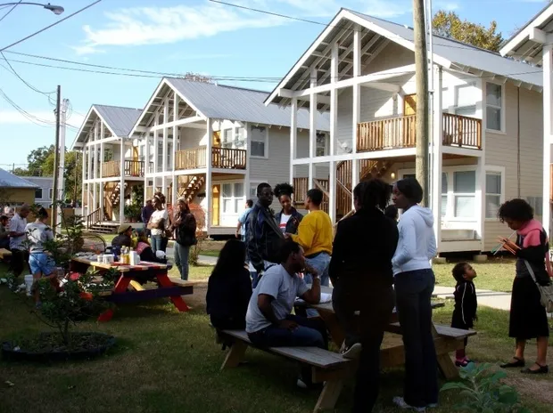 与此同时,这些霰弹枪房屋也为一些人提供了实际的居住空间。例如,年龄在18到26岁之间、拥有17岁以下孩子的单身母亲,如果愿意找工作并积极寻求进一步教育,可以申请年轻母亲住宅项目——本质上是补贴的过渡住房。项目排屋于2003年启动了一个社区发展公司,这是一个独立的非营利实体,其使命是“加强、维持和庆祝第三区社区的生活,”根据网站的说法。