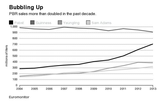 销售缓慢回升。在过去的10年里,Pabst的销售额翻了一番,而在此期间,美国一些最受欢迎的品牌却在失去客户。