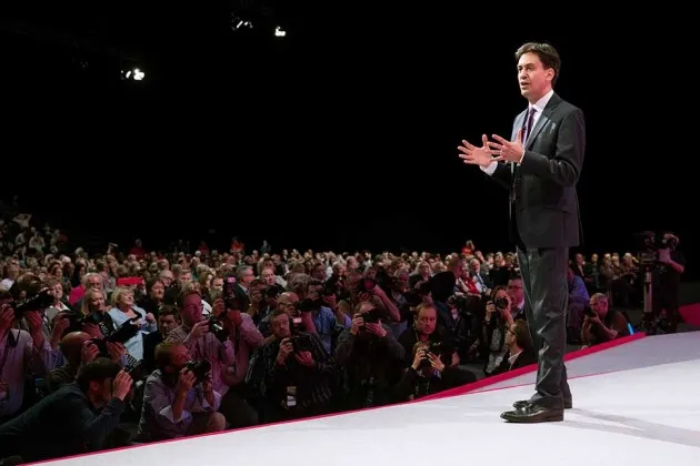 工党领袖埃德·米利班德在9月22日的曼彻斯特工党大会上对代表们发表讲话摄影:奥利·斯卡夫/Getty Images苏格兰投票决定留在联合王国为首相大卫·卡梅伦带来了意想不到的政治红利,使反对派工党处于一个潜在的无胜算局面。