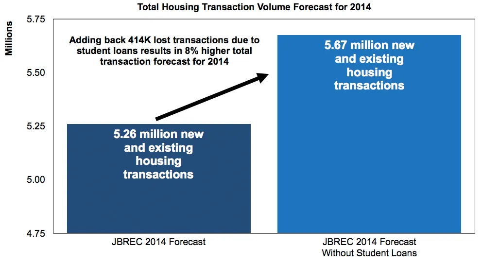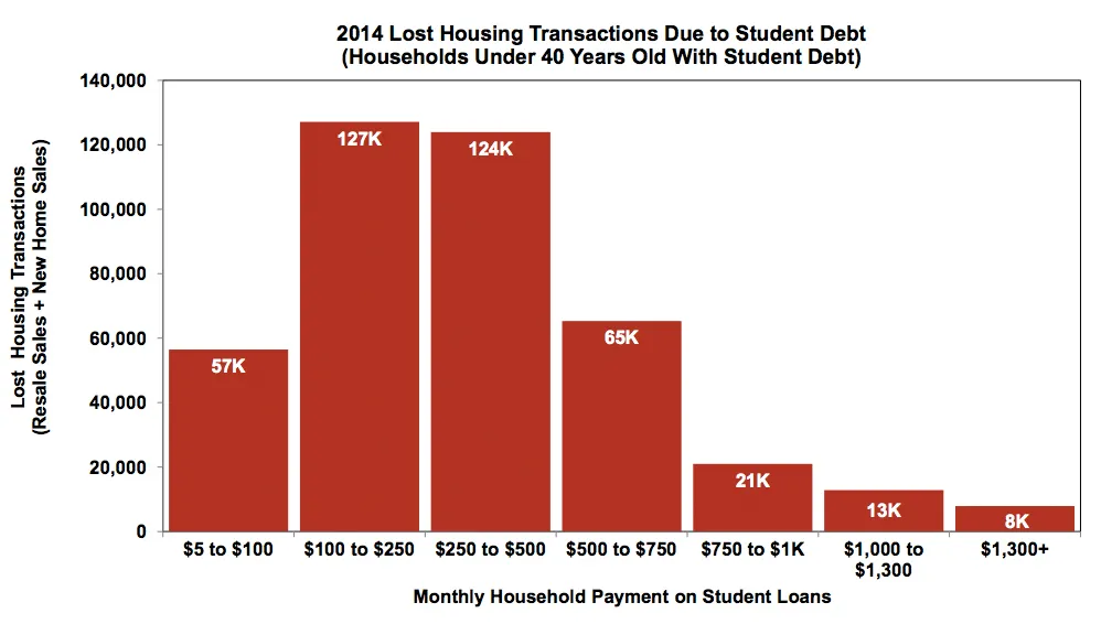 一份报告的答案是肯定的。该研究,于周五发布,由约翰·伯恩斯房地产咨询公司提供,称学生债务将使今年的房屋销售下降8%,减少414,000笔购房交易,并在住房市场造成830亿美元的“损失活动”。