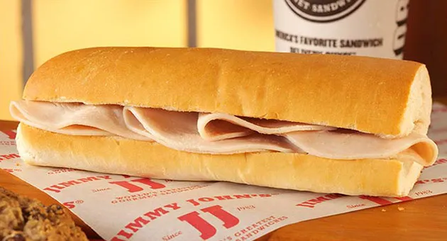 10. Jimmy John’s Gourmet Sandwiches: 这家 快速增长的连锁店 提供“瘦”三明治,热量仅略高于200卡路里。