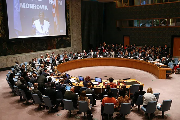 安全理事会成员于9月18日在纽约联合国总部参加关于埃博拉危机的会议摄影:香农·斯塔普尔顿/路透社