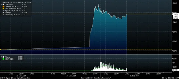 随着新明星投资者的加入,资产肯定会随之而来,而Janus,作为2000年第五大美国共同基金运营商,将重新获得一些光彩。至少在短期内,Pimco将受到打击。根据彭博新闻的报道,投资者一直在抛售Pimco的共同基金。Janus的股票则在上涨,自市场开盘以来,该公司的股票价值增加了约6.9亿美元。