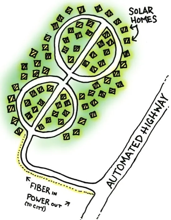 多年来,亚特兰大大都会区遭受严重的交通拥堵,这在很大程度上是由于城市扩张和去中心化造成的。作为回应,亚特兰大决定……进一步扩张。这个场景假设亚特兰大抵制了对公共交通和以交通为导向的发展呼声,而是试图通过“增长”来解决交通问题。推动这一转变的是由谷歌运营的太阳能道路——G-Roads——无人驾驶汽车以每小时90英里的速度将通勤者连接到城市。在这个场景中,拥堵确实有所下降,但郊区和边缘城市大幅扩张。来自报告的内容: