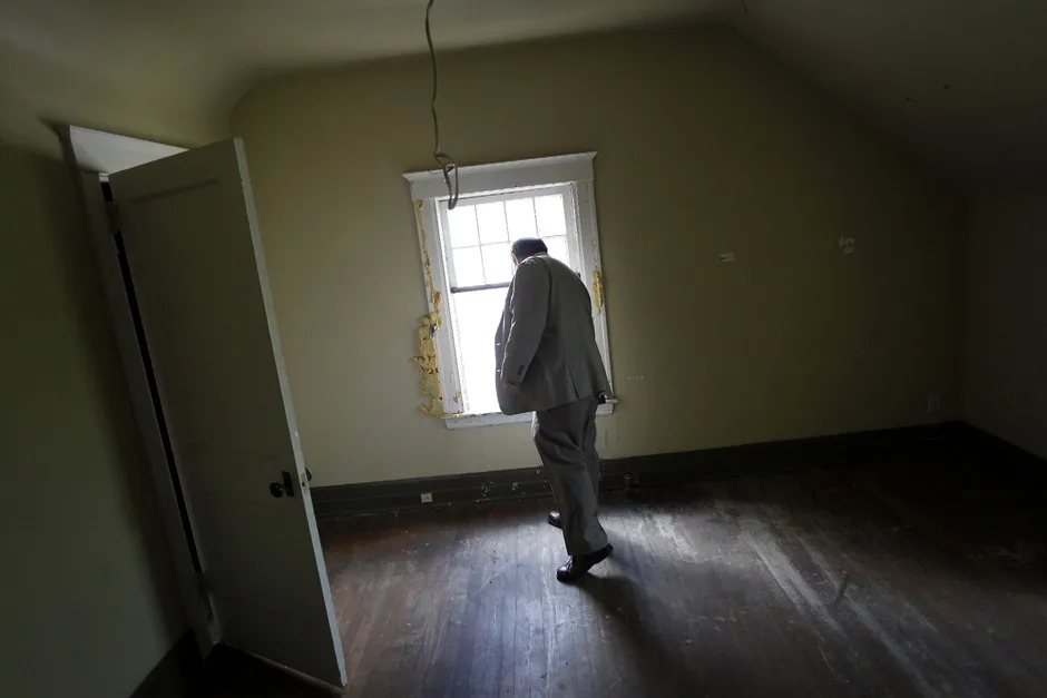市长杜根在2014年5月参观了一处拍卖的房屋,这是底特律市和底特律土地银行填补废弃社区努力的一部分。大多数房屋的起拍价为1,000美元。路透社/约书亚·洛特我们听说很多关于底特律必须缩小的事情。但你竞选市长时提出了保护城市社区的理念。请告诉我们关于这方面的情况。